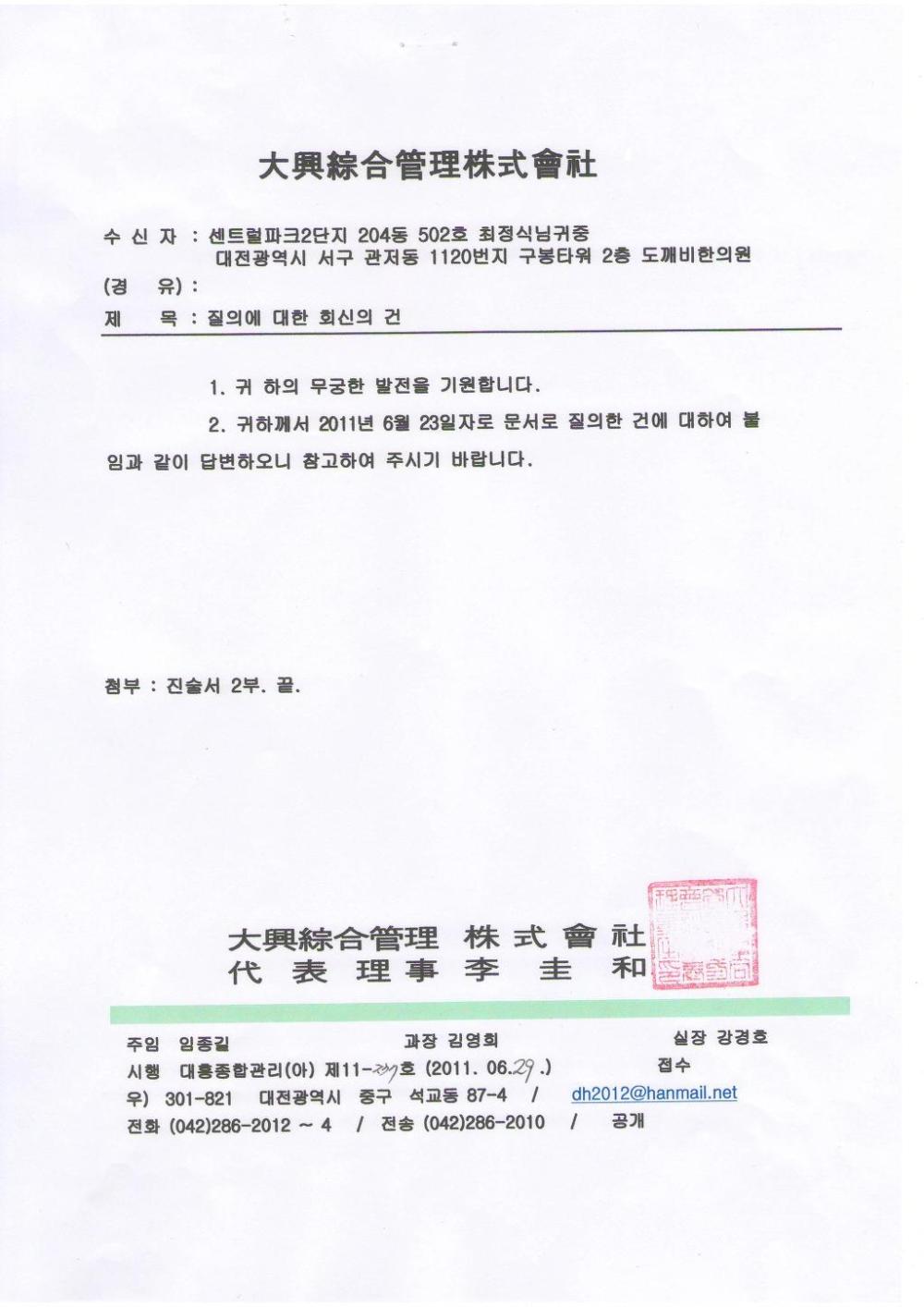 ÇコÀå °ü·Ã (ÁÖ)´ëÈïÀÇ °ø¹®¼ ¹ß½Å ¹× ¼ö½Å³»¿ë |